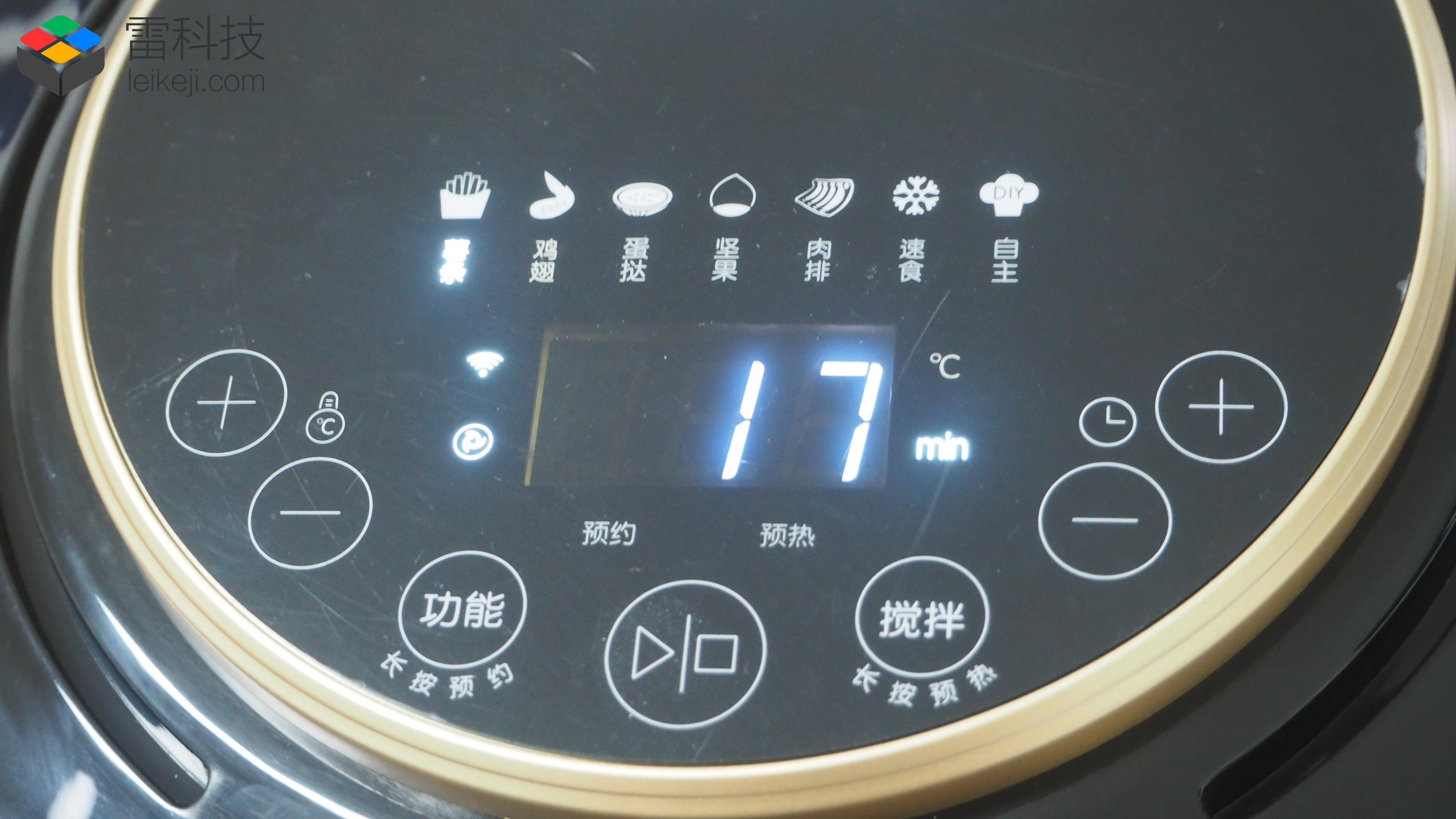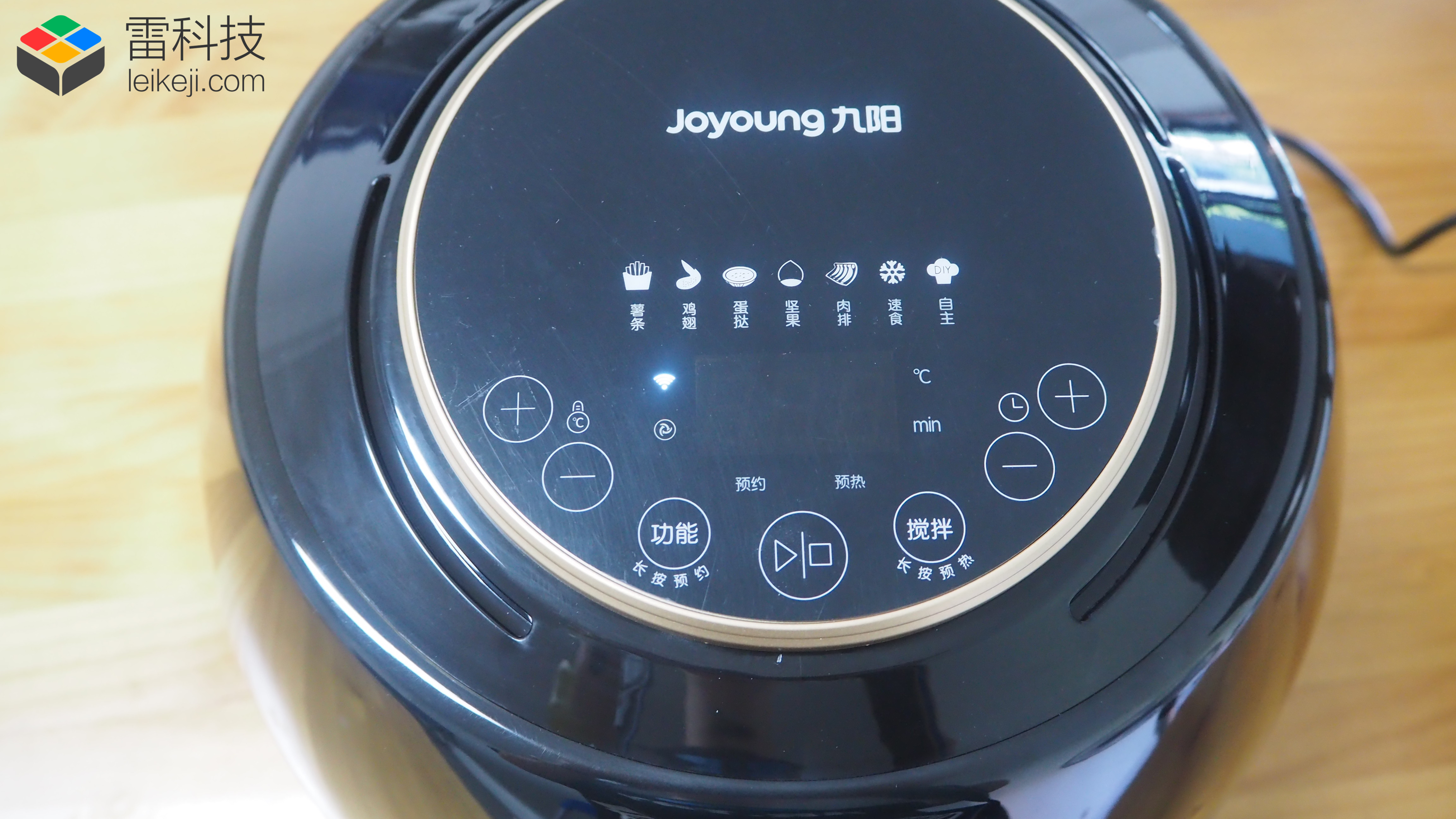操作:传统按键、手机 APP 任君选择,智能翻炒拯救手残党 1F 传统按键九阳 50G1 的触控板上提供了薯条、鸡翅、蛋挞、坚果、肉排、速食和自主七中选择,基本可以满足大部分需求。具体操作步骤为:放入食材——插电——点击功能选择食材类型——点击最中间的启动键即可。如果你不想现在就启动,还可以选择预约功能。