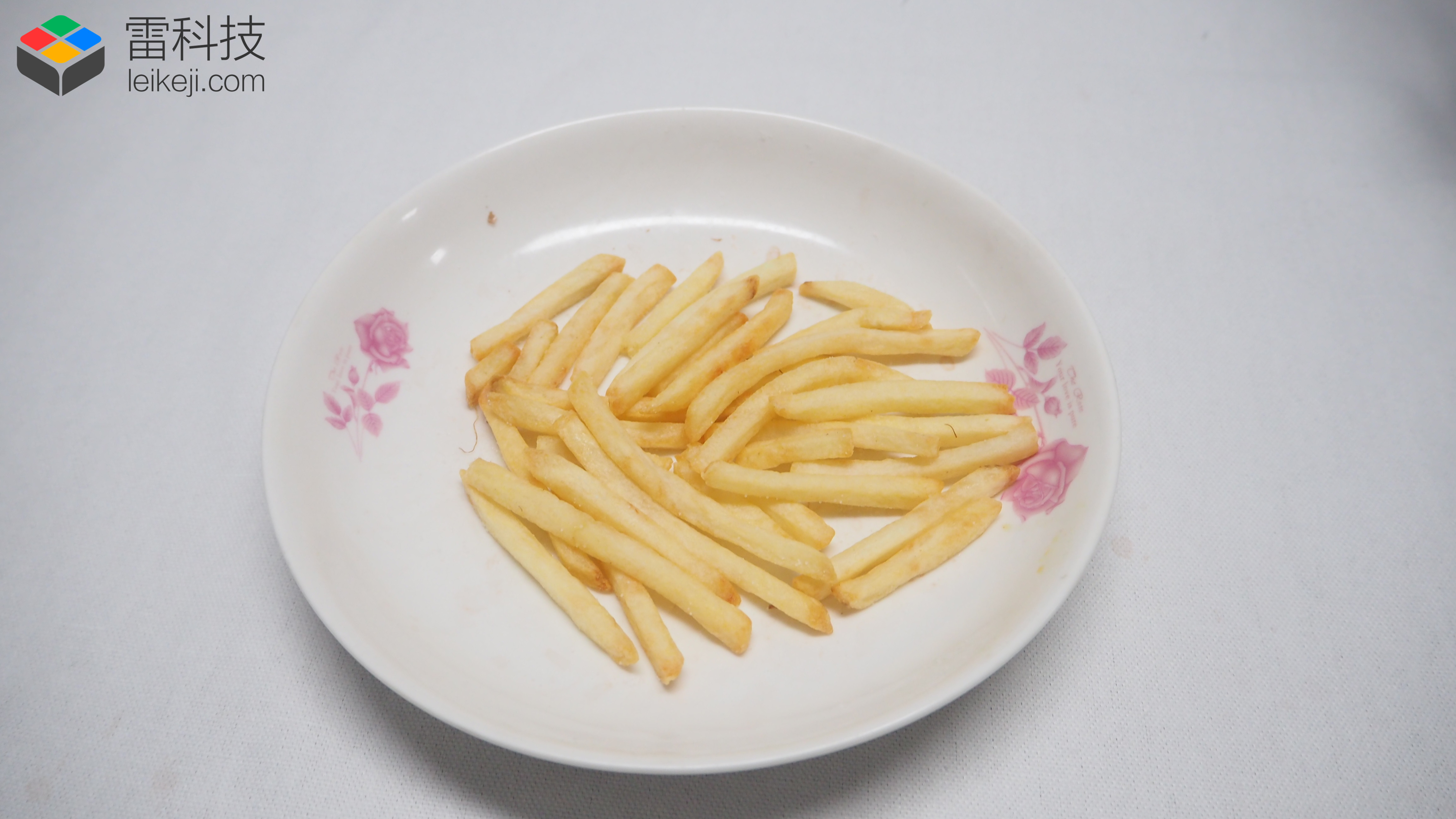 实际烹饪效果:足够让人满意九阳 50G1 空气炸锅烹饪时控制的关键变量其实只有两个:温度和时间。不管是官方还是其他用户制作的菜谱都是如此,而传统的油炸锅和烤箱其实也是如此。小雷(微信:leitech)按照食谱上的做法,测试了黄金薯条、香脆花生米和田园玉米三种食物。