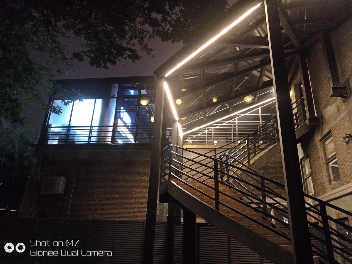 上图为普通模式 100% 裁剪,下图为长焦镜头样张裁剪,可见画面清晰度还是有所改善 夜景方面,金立 M7 画面比较明亮,但有些场景噪点还是抑制不住。手抖的话容易拍糊,要在夜晚拍出清晰照片的话,可能就需要多加尝试了。