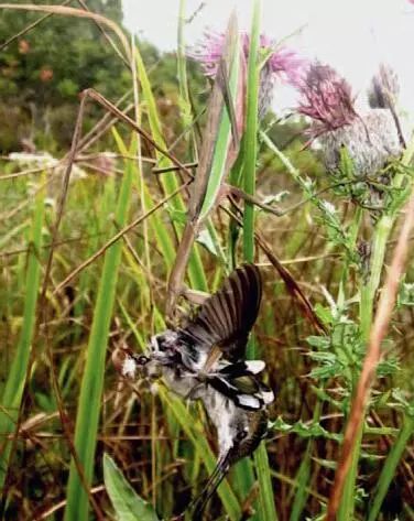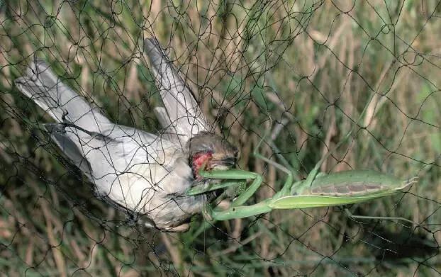 有的时候,当鸟类被网困住时,螳螂还有机会吃到体型更大一些的鸟类_(:з」∠)_