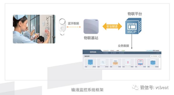 针对中山医院首要需求,锐捷医疗物联网解决方案中的全闭环输液管理系统率先启用,通过智能输液监测器、室内物联网基站和物联平台,完成医院输液流程全闭环管理。