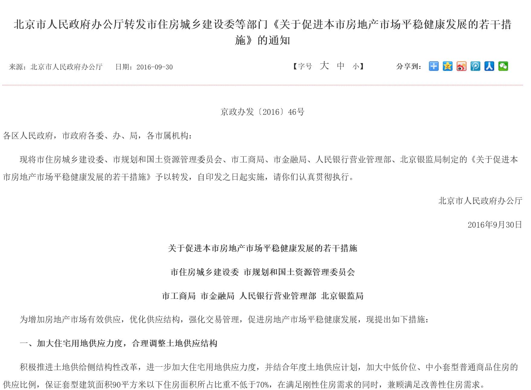 引人瞩目的是北京,北京市政府办公厅转发了北京市住房城乡建设委等部门《关于促进本市房地产市场平稳健康发展的若干措施》的通知,提出了北京市房地产调控八个方面的措施,被称作“京八条”,政府施展出“组合拳”,在金融杠杆、土地供应和销售价格等方面对北京楼市加以管制。