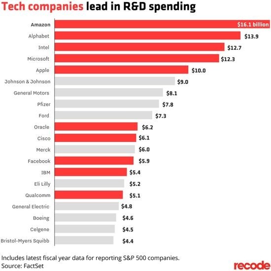 事实上亚马逊在科研上的投入向来惊人。去年,亚马逊在研发上的投入高达161亿美元,在全球科技公司中位列第一。雷锋网认为,这无疑是个令竞争对手胆战心惊的数字,因为如此巨大的投入可能会进一步加强这家在线零售巨头的市场主导地位。