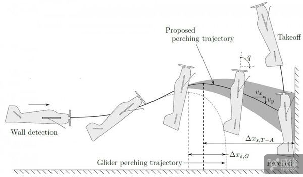 研究小组决定在固定翼无人机中建立这种能力。然而要实现这个并不简单,为了了解无人机的推动力和正确性,研究人员需要运行数千个空气动力学建模模拟。在测试当中,无人机以 7 至 9 米每秒的速度水平飞行,当激光传感器检测到前方墙壁之后,反馈控制将飞机降低至每秒 1 到 3 米的速度,并让无人机开始向上倾斜。当附着在墙壁之后,推力仍然可以让无人机保持垂直地面的位置。