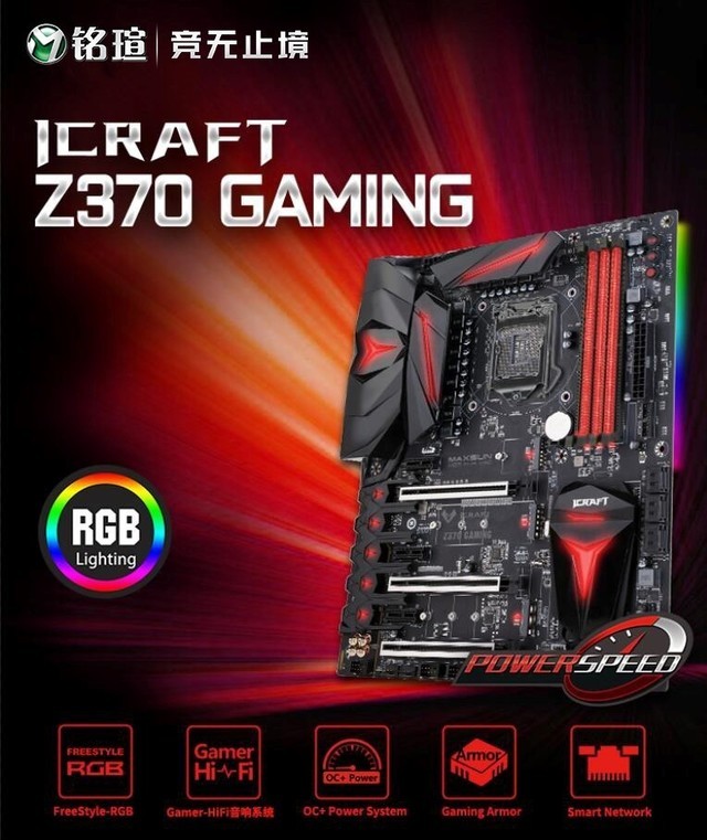 与第八代CoffeeLakeCPU一起站上风口浪尖的就是其“专驾”——Z370芯片组主板,随着英特尔的解禁,各大主板产商纷纷放出自己这次的得意作品,作为秉着竞无止境理念的铭瑄也不例外地推出了自己这次的全新系列“电竞之心iCraft”Z370主板,相信众多主玩超频的玩家对其他与超频无关参数并不感冒,这次铭瑄电竞之心Z370采用了15相纯数字供电,加上与英特尔实验室共同研发的供电模块,可以给CPU超频提供稳定充足的电量供应,在英特尔实验室一手支持下,铭瑄电竞之心Z370能在较低条件下让CPU超到更高的频率。