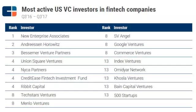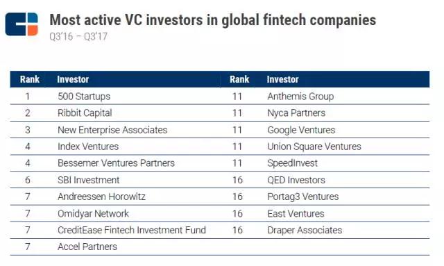 500 Startups和Ribbit Capital是全球金融科技领域最活跃的投资机构。Ribbit Capital近期的投资包括欧洲的数字银行初创企业Revolut和抵押贷款初创企业Habito,还包括印度的企业贷款初创公司Capital Float。