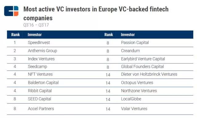 SpeedInvest是欧洲最活跃的风险投资机构,其次是Anthemis Group和Index Ventures。CVC投资占比则达到近5个季度的最低,只占22%。