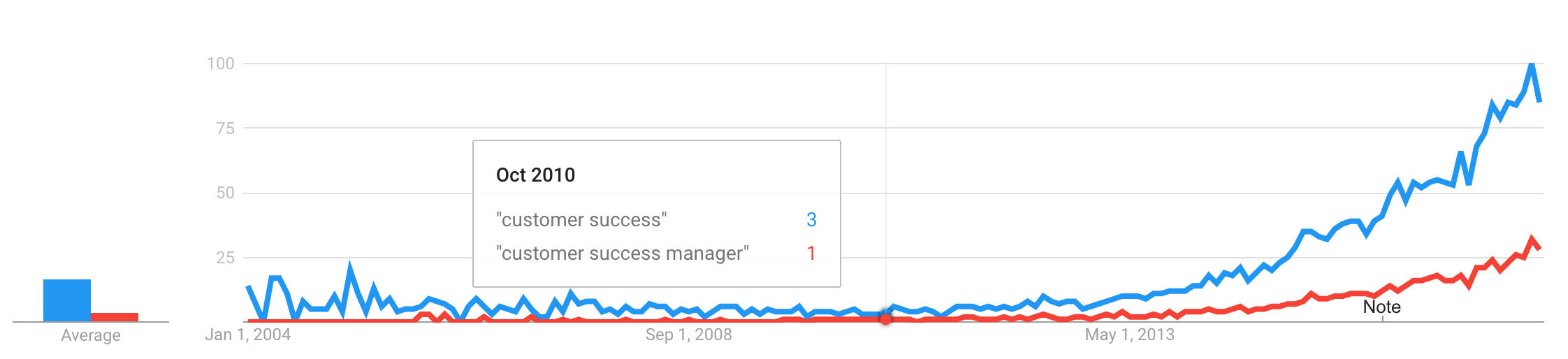 然而,绝大多数SaaS从业者对“客户成功”这个概念一脸茫然,有所耳闻者寥寥,有实践经验者更是屈指可数,更不要说客户成功方法论的沉淀和提炼。即便在硅谷,客户成功也是一个相对新的概念,在谷歌指数分别搜索“Customer Success”和“Customer Success Manager”,也是从2013年开始,认知度才显著提升。