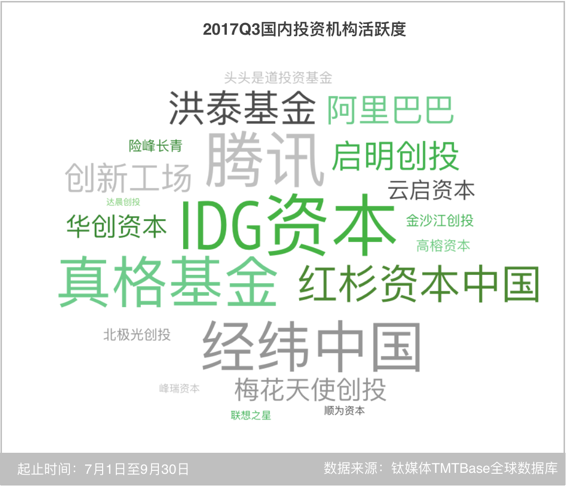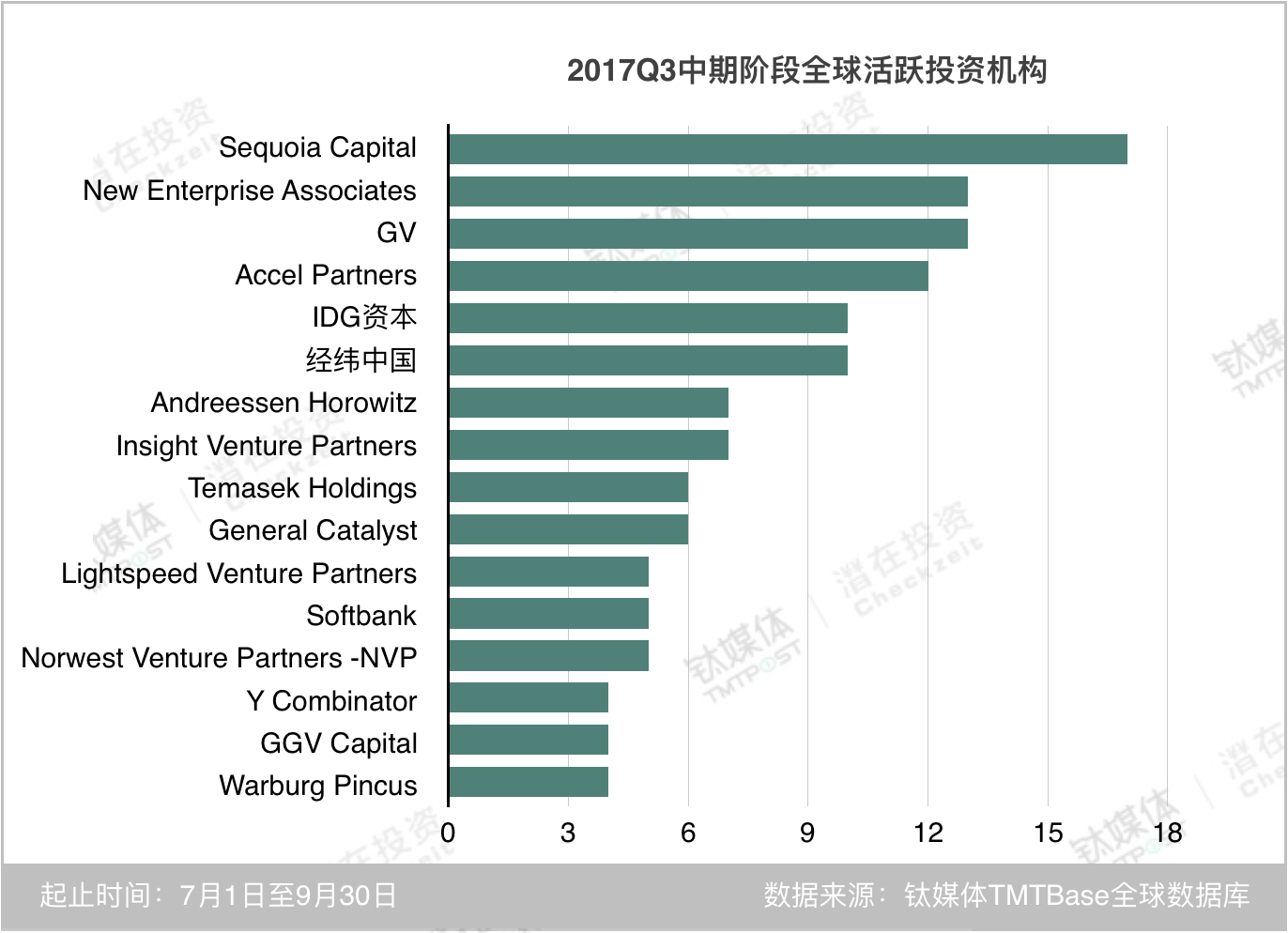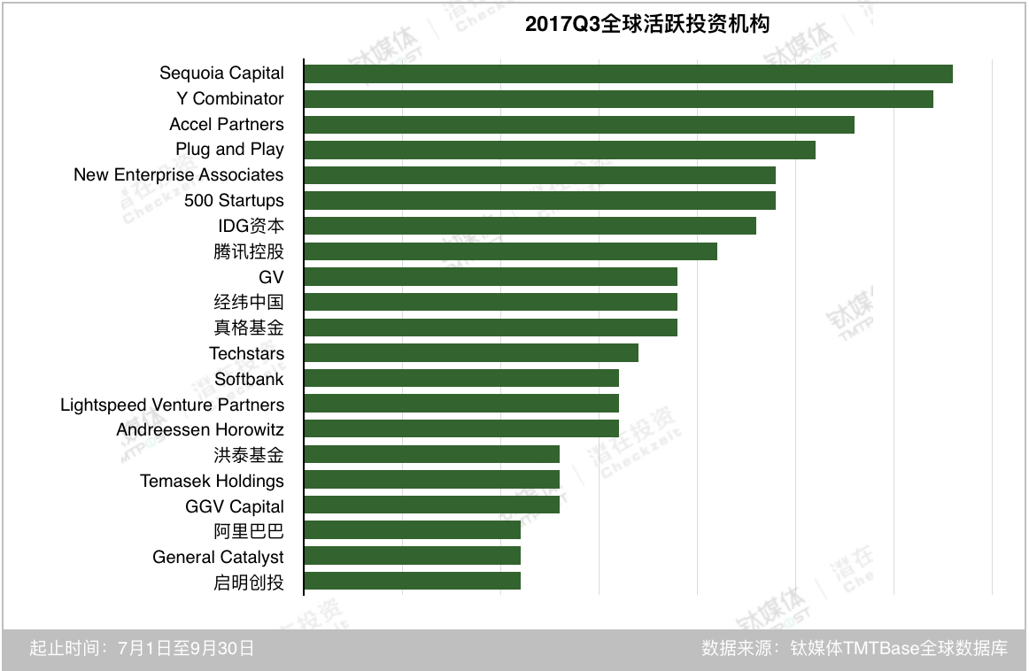 深入全球风险投资生态系统,钛媒体Pro梳理出2017年第三季度较为活跃的投资机构,“活跃”即为参与投融资事件的次数。