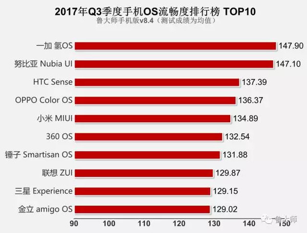 原标题:论系统流畅度排行,这个结果用户都不服 【PConline 资讯】近日,鲁大师公布了Q3手