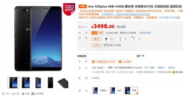 6.43英寸全面屏 vivo X20Plus苏宁易购热销中