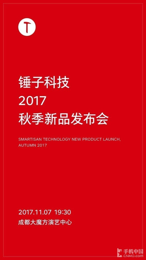 【手机中国 新闻】全面屏、全面屏、全面屏,手机圈目前最火热的概念正在火速蔓延,动作稍微滞后的厂商就有可能被淘汰。昨天晚些时候,锤子科技对外发布公告称,锤子科技2017秋季新品发布会将于11月7日19:30在成都大魔方演艺中心举行。至此,锤子科技的新品发布会时间终于得到确认。据媒体报道,这款新机很有可能是坚果系列的全面屏手机。