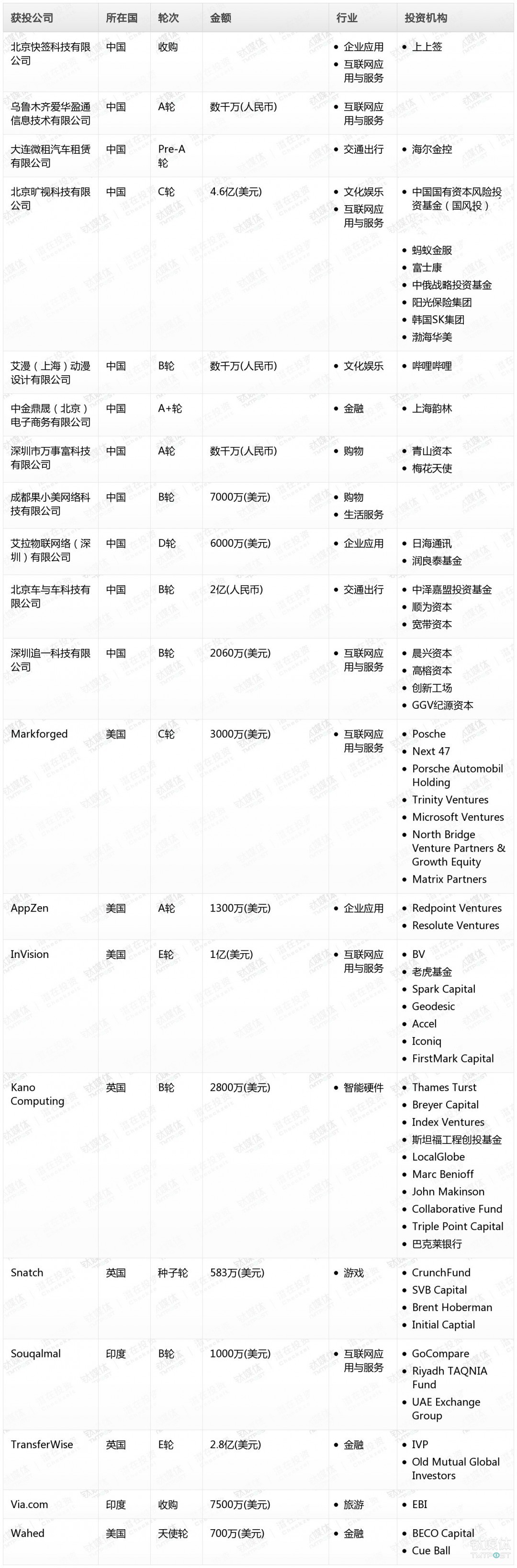 查看更多投融资数据24小时实时更新,和更多精彩分析;与行业大咖共聚前沿趋势讨论,加入钛媒体Pro,注册成为钛媒体Pro会员:http://m.tmtpost.com/pro 。