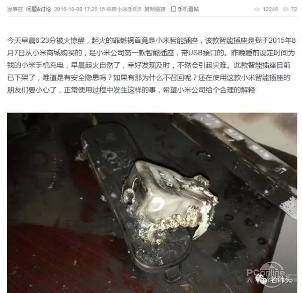 原标题:小米插线板起火烧毁房屋 官方表示:用户的问题 【PConline 资讯】近日,某用户在微