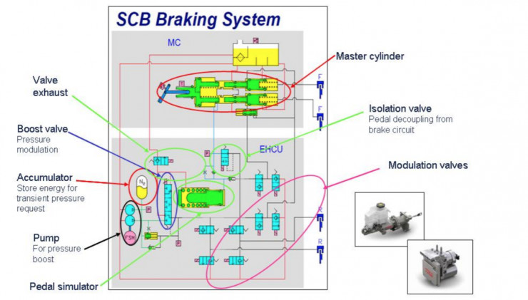 丰田第一个将EHB系统应用于量产车上,这就是1997年年底推出的第一代普锐斯,丰田将其命名为EBC。随后TRW也推出了EHB系统,TRW将其命名为SCB。今天福特的混动车基本都是SCB。