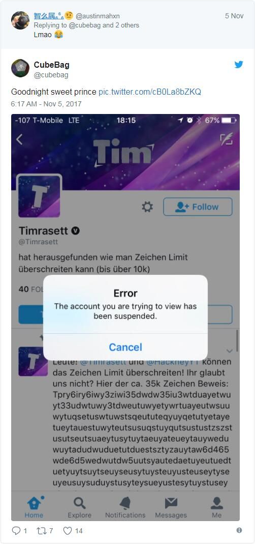 原标题:网友突破推特字符限制:所谓35k字符只是个链接
