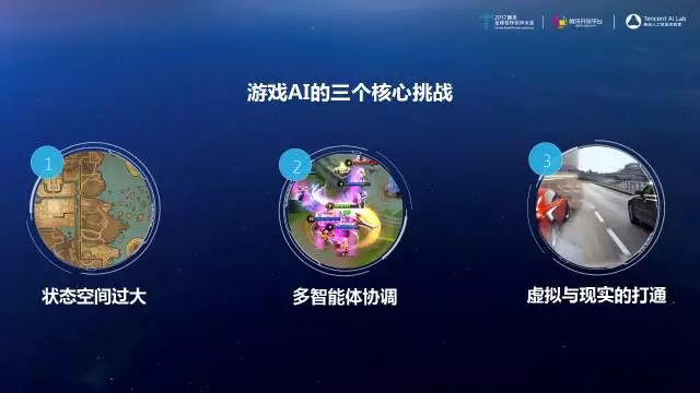 一,游戏的状态空间过大。比如很多战略型游戏的状态空间是无穷维,远大于围棋空间。因此,腾讯研发了机器人大脑,这是整合了模型、算法与计算体系结构的解决方案,整个系统的核心是使用深度神经网络来建模超大规模的状态空间。