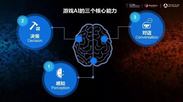 对于腾讯来说,则对游戏研究的三个核心能力感兴趣。第一是感知的能力,第二是对话的能力,第三是决策的能力。刘晗认为,这相当于人类大脑的三个不同区域。比如说,决策相当于左脑,对话能力相当于右脑,而感知相当于人类大脑的后脑那一部分。