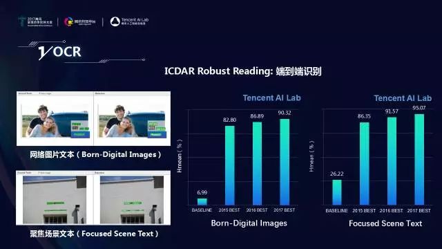 刘威介绍,在这些方面,他们取得了一些科研成果。比如在 OCR(Optical Character Recognition,译为光学字符识别)任务中取得六个第一,其中三项是针对网络图片文本,另外三项是针对聚焦场景文本。