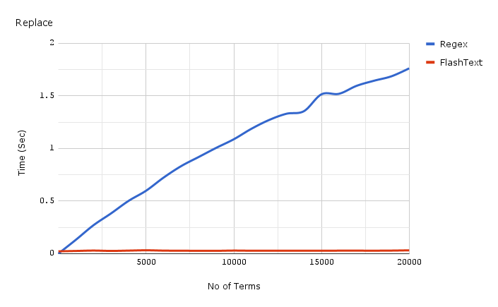 同样,下面的红线是 FlashText 的替换速度。