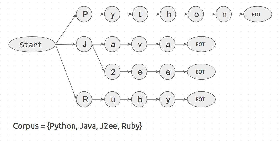 幸好,在 Stack Overflow 上我的疑问获得了大家的关注,网友们和公司同事 Vinay Pandey、Suresh Lakshmanan 等人提到了一个名叫 Aho-Corasick 算法的神奇工具,以及前缀树数据结构(Trie Data Structure)。然而目前网络上还缺乏相关资源。
