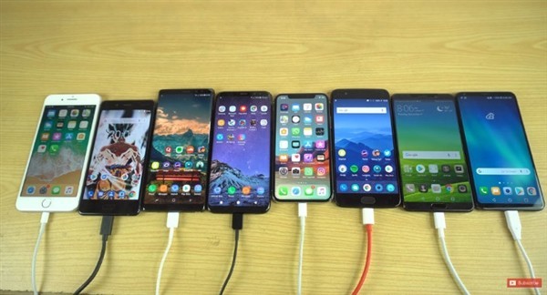 近日,有国外网友就把今年比较热门的旗舰手机凑到了一起,进行了一场续航测试比拼。此次测试共有8款手机,分别是Phone 8 Plus、Apple iPhone X、华为Mate 10、LG V30、Nokia 8、一加5、三星Galaxy Note 8、三星Galaxy S8+。