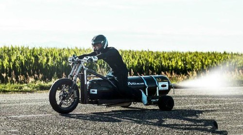 据悉,在不用任何燃料的情况下,这辆车仅仅依靠水就能跑出260公里/时的极速,超级酷炫。同时为了实现车辆的最轻化,三轮车上没有安装座椅和任何固定装置,驾驶者就是直接坐在钢瓶上,身上简单系了安全扣带而已。如此简单的装置,Gissy竟然都没有在急速行驶中掉下去,这身体素质也是让人惊叹了。