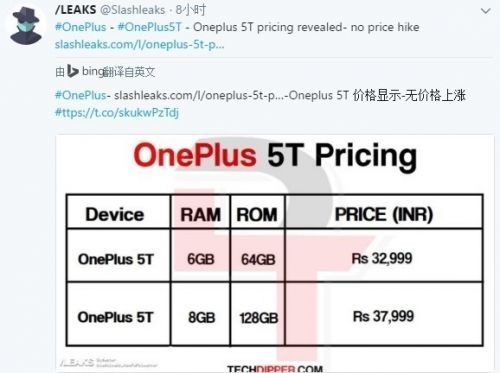爆料大神表示,此次一加5T将有两个版本,6GB+64GB版本售价32999印度卢比(约合人民币3347元),8GB+128GB版本售价37999印度卢比(约合人民币3854元),与之前印度版本的售价基本一致,看来今年国行版的售价可能也还会是2999元起。