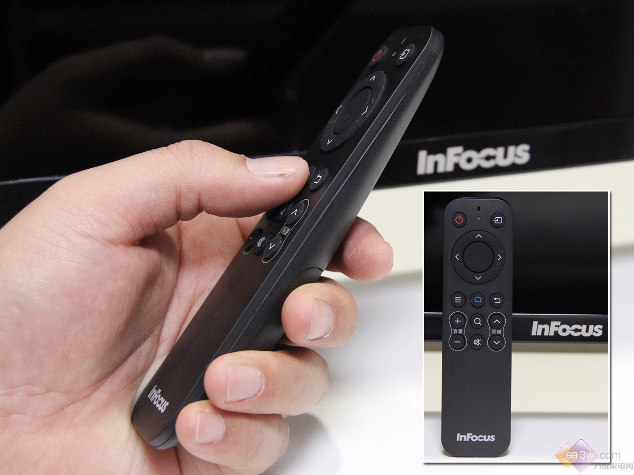 InFocus富可视50IU170的配备遥控器同样是时下非常流行的极简设计,只有16个按键,用户很快就能够熟悉,便于盲操。