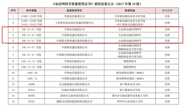 今年8月份,工信部就给运营商批准了新号段,中国电信获得199号段,中国移动得到198号段,中国联通得到166号段。