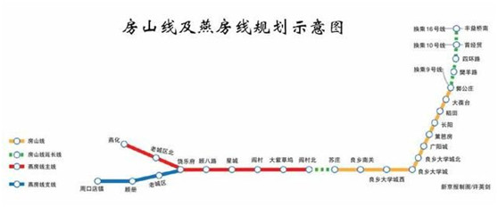 燕房线列车最高运行时速80公里,每列4辆编组,定员960人。线路全长16.6公里,共设9座车站,在阎村北站与房山线换乘。