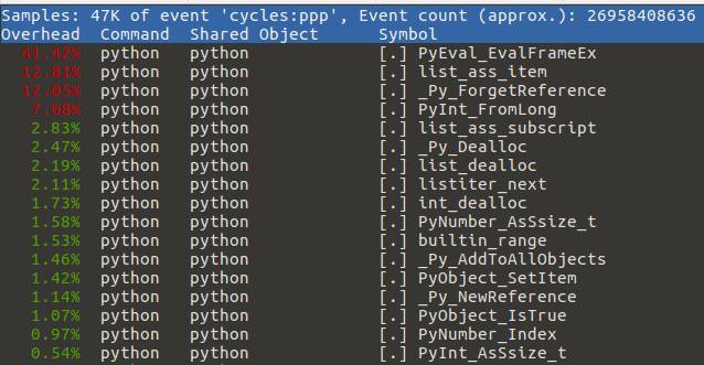 我们使用下面的代码重建了 CPython 解释器。你应该将这个 Python 脚本下载到同一个目录。另外,要确保你的系统安装了 perf。