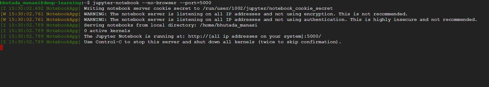 要运行 Jupyter 笔记本,只需在你所在的 ssh 窗口输入下列命令: