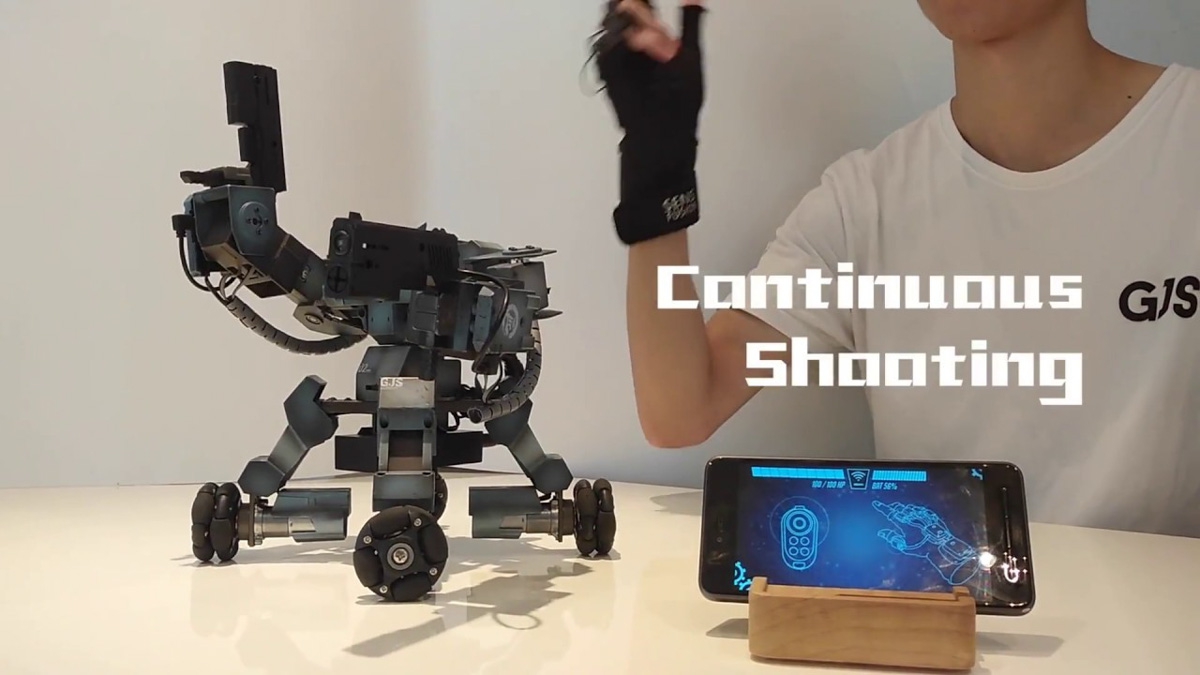 他们会推出一种操控手套,可以用特定的手势来控制 GANKER 机器人。手套能够识别人的特定手势,并指挥 GANKER 移动和攻击。只是,这种操控只限制在固定手势,跟丰田这种体感操控还是有很大的差距。