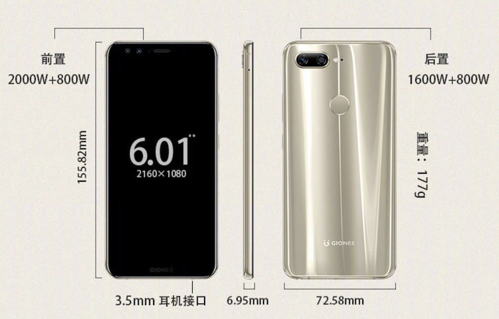 金立 S11S 配备 6GB+64GB 内存组合,Helio P30 处理器,6.01 英寸 18:9 AMOLED 屏幕,支持 NFC 手机支付,3600mAh 电池加上 18W 快充,基本上是追求实用的配置。外观亮点是用上了前后玻璃加金属中框的设计,背部玻璃是 3D 四曲面。
