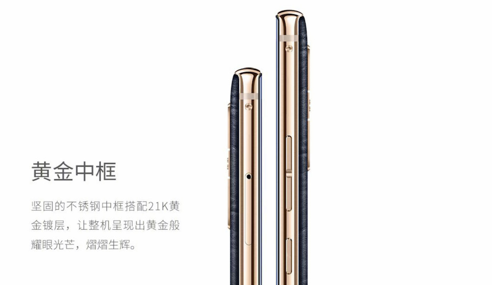 首先在材质上,就脱离了金属加玻璃的大众趣味,而是选择了背部美洲上等头层小牛皮,不锈钢金属中框镀上 21K 纯金,正面配备 6.43 英寸 AMOLED 全面屏。这样的尺寸,这样的颜色,这样的材质,基本上是部门总监,处级干部才能驾驭得了的。