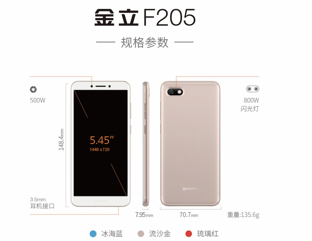 另外的 F6、F205 和金钢 3 三款手机则是通常意义上的千元机了,配置一般,共同点是都采用了 18:9 屏幕,屏占比也都比较大,所以金立也称之为“全面屏手机”。