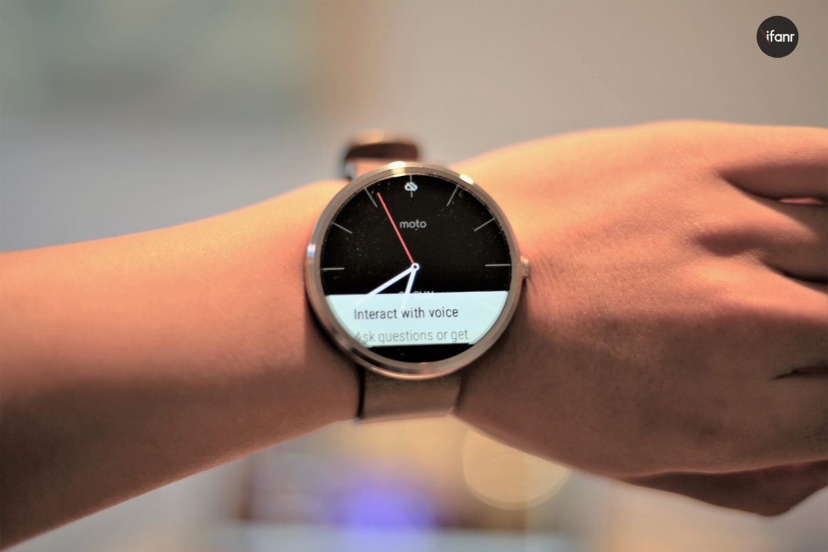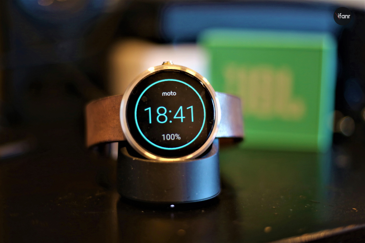 接触的第一块智能手表则是 Moto 360 一代,虽然当时市面上已有不少智能手表,但对圆形表盘的执着还是让我选择了 Moto 360,即便屏幕为了给光线传感器让路而缺了一块,可在当时一众同类产品中,我认为它依然是颜值最高的。