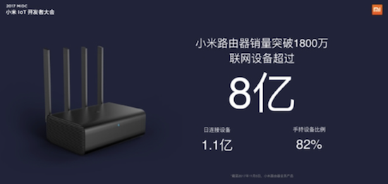 目前小米官网已经有超过100款的智能硬件产品在销售,其数量还在不断增加。另外随着米家APP的上线,非小米品牌、非小米生态链公司出品的第三方智能硬件产品也越来越多。而小米的三大核心业务路由器、电视和手机也都表现得相当不错,尤其是小米路由器。根据小米官方数据显示,小米路由器销量突破1800万,联网设备超过8亿,日连接设备1.1亿部,其中手持设备(手机、手环等)比例高达82%。