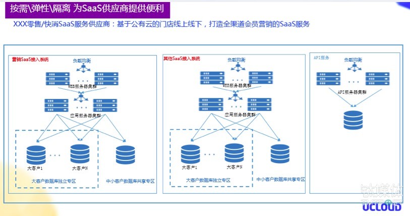 公有云服务器、数据库等产品功能的多样性,为SaaS服务的弹性扩展、隔离、共享等多样的需求提供了便利。