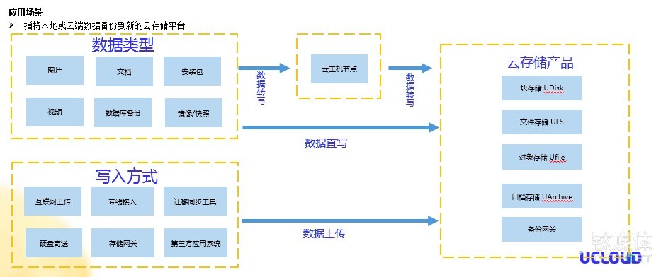 在本地的图片、文档、视频、安装包甚至数据库备份软件、镜像快照等都可以通过数据直写或者是数据上传的方式传到云端的存储产品里边。