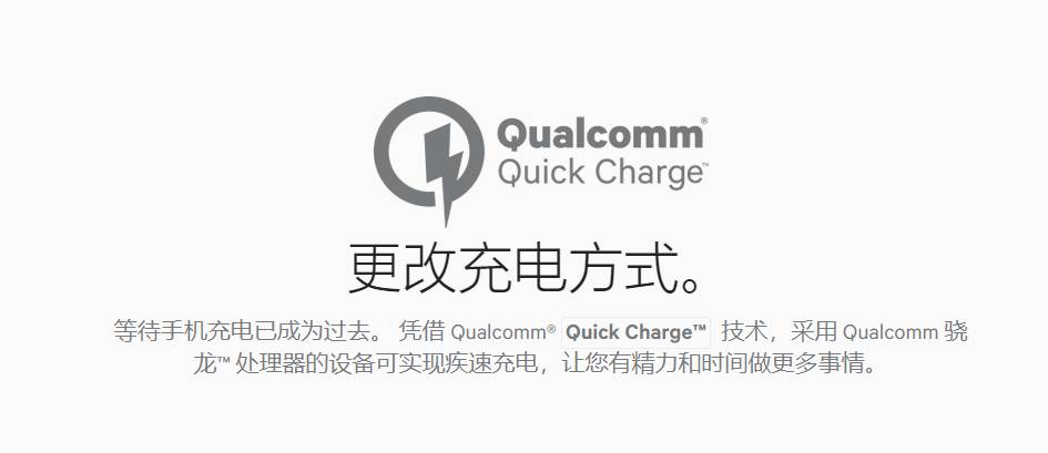 1F 高通 Quick Charge 快充技术虽然一加 5 的 DASH 快充和华为的超级快充都很厉害,但是市面上使用得最广泛的还是高通的 QC 快充。高通的快充理念是通过提高手机充电输入端的电压,让电量能够更多地进入到手机的电池之中,以此来完成快速充电。