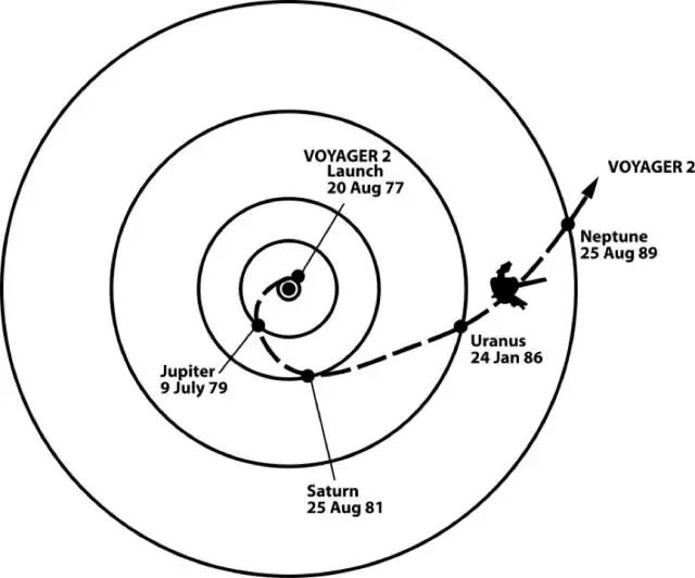 旅行者2号的航线图。图片来源:Voyager 2/Wikipedia