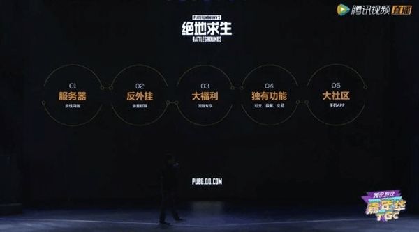 从图中可以看出,腾讯对国服版的《绝地求生》做出了5种改变,一是优化游戏服务器;二是对游戏中的外挂严厉打击;三是国服拥有专项的福利;四是独有的社交、数据、交易功能;五是有着手机专属APP。