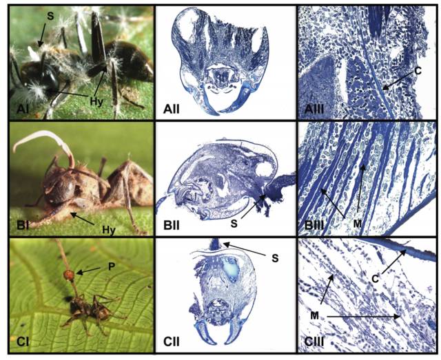 然而一篇新的PNAS论文让这个故事变得更加可怕了:研究者发现了这些真菌操纵蚂蚁的可能方式。