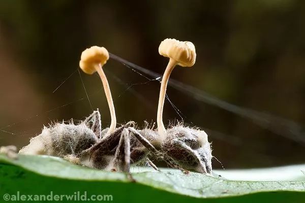 有一种热带真菌会寄生在蚂蚁体内,吃蚂蚁的身体来获取营养。等它生长到一定程度,会操纵蚂蚁离开蚁巢,寻找一片草叶,爬到正好25厘米高度,并挂在那里。真菌的孢子将从这里散落,感染其他蚂蚁。