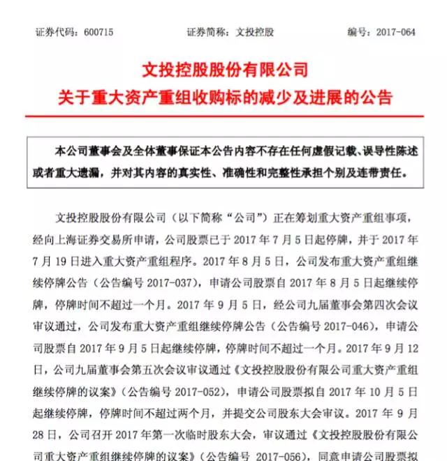 前几日,上市公司文投控股发布公告称,经多轮商谈,公司预计无法在本次重组复牌之前,与拟收购标的之一的海润影视制作有限公司(以下简称“海润影视”)股东,就收购协议的主要条款达成一致,因此双方决定终止海润影视的收购谈判,海润影视将不纳入本次公司重大资产重组收购标的范围。
