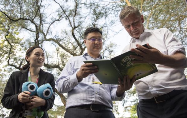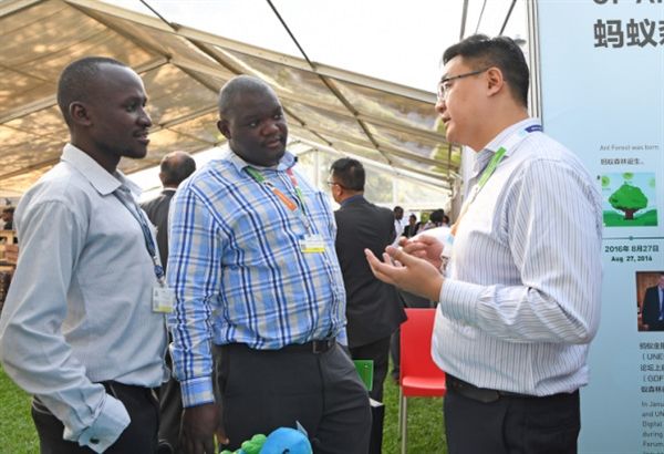 蚂蚁森林负责人祖望为非洲咨询组织负责人John Kimathi等人介绍“蚂蚁森林”