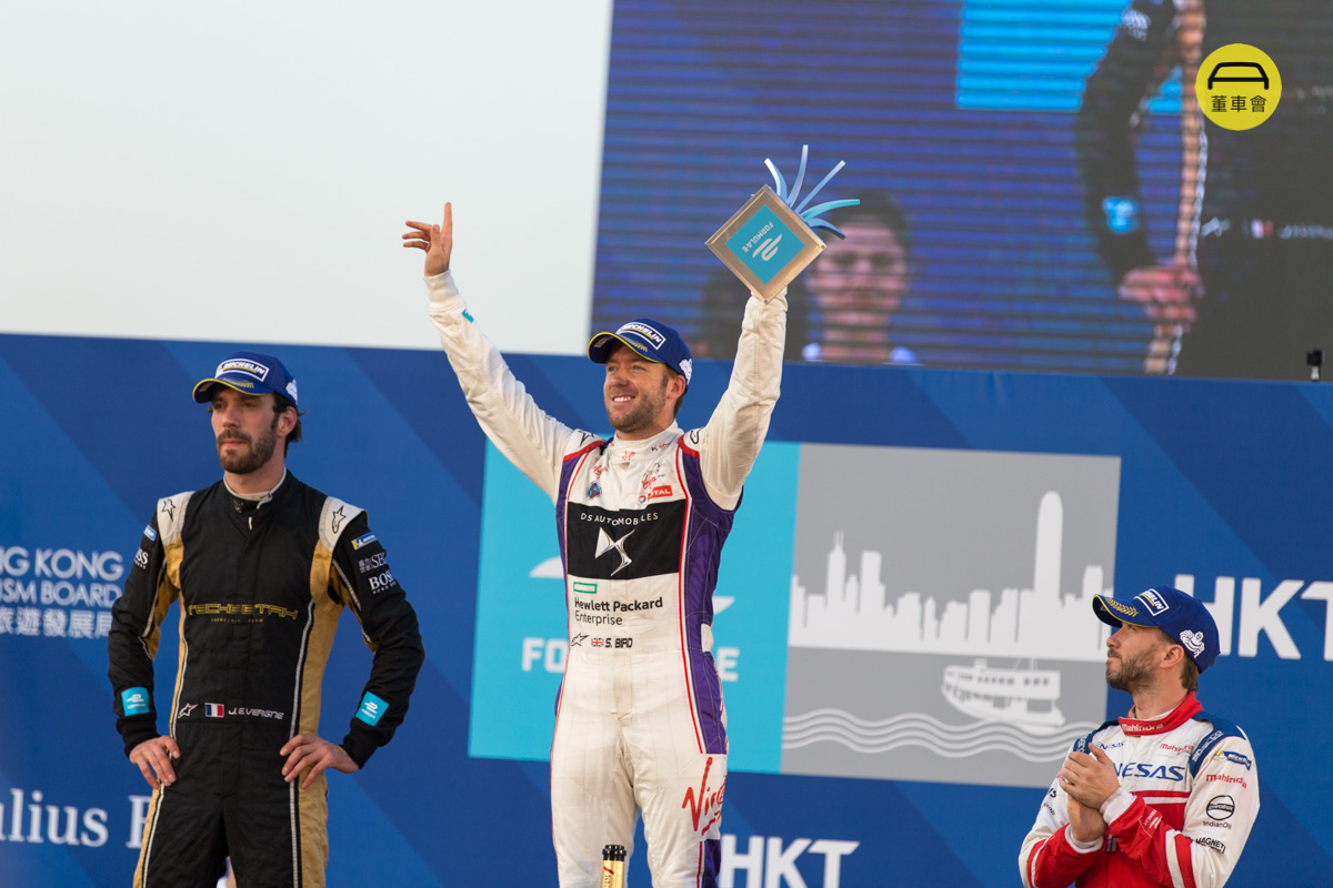 夺冠时刻的兴奋。虽然进站换车时出现了一点小事故,差点撞到了维修技师,Formula E 名将山姆·伯德最终还是力压群雄夺得本赛季第一个分站赛冠军。