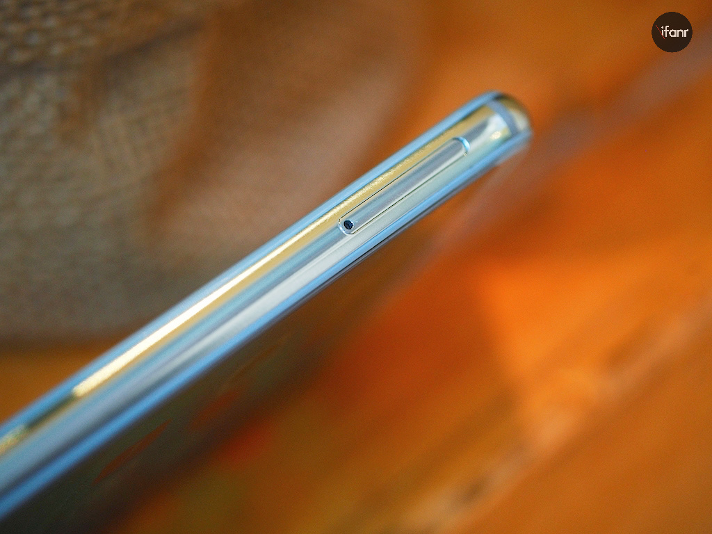 而与不锈钢中框一样,天线部分也用上了与机身接近的配色。音量键和电源键被布置在手机右侧,左侧偏上的位置为 SIM 卡槽。
